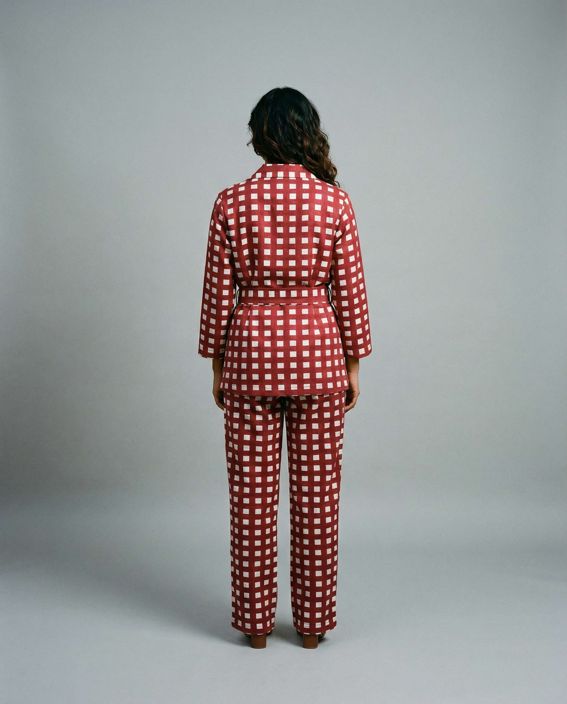 The Aura Pants in Candy Cane bring playful character to a comfort-first silhouette. Crafted from breathable linen, these straight-fit pants feature a structured front belt with an elasticated back for ease and flexibility. Functional side pockets ensure practicality, while the candy cane check adds a festive yet timeless graphic touch. Designed for relaxed days with personality, the Aura Pants blend comfort with charm.
