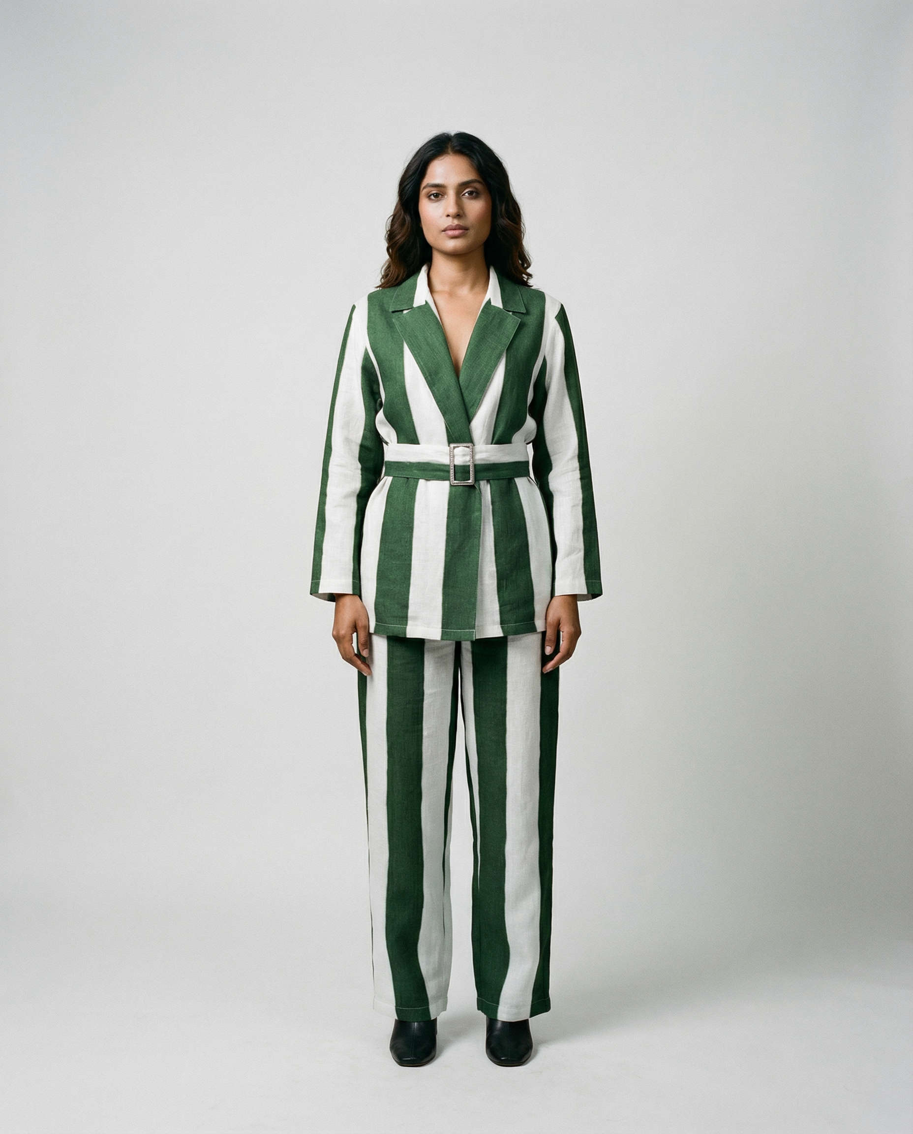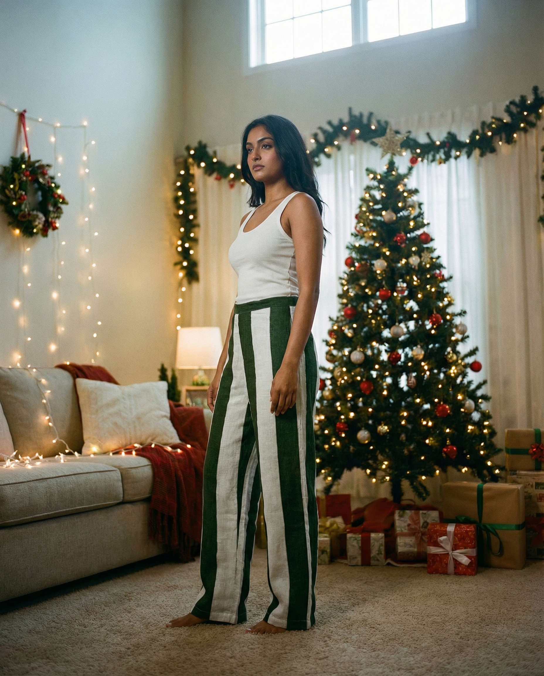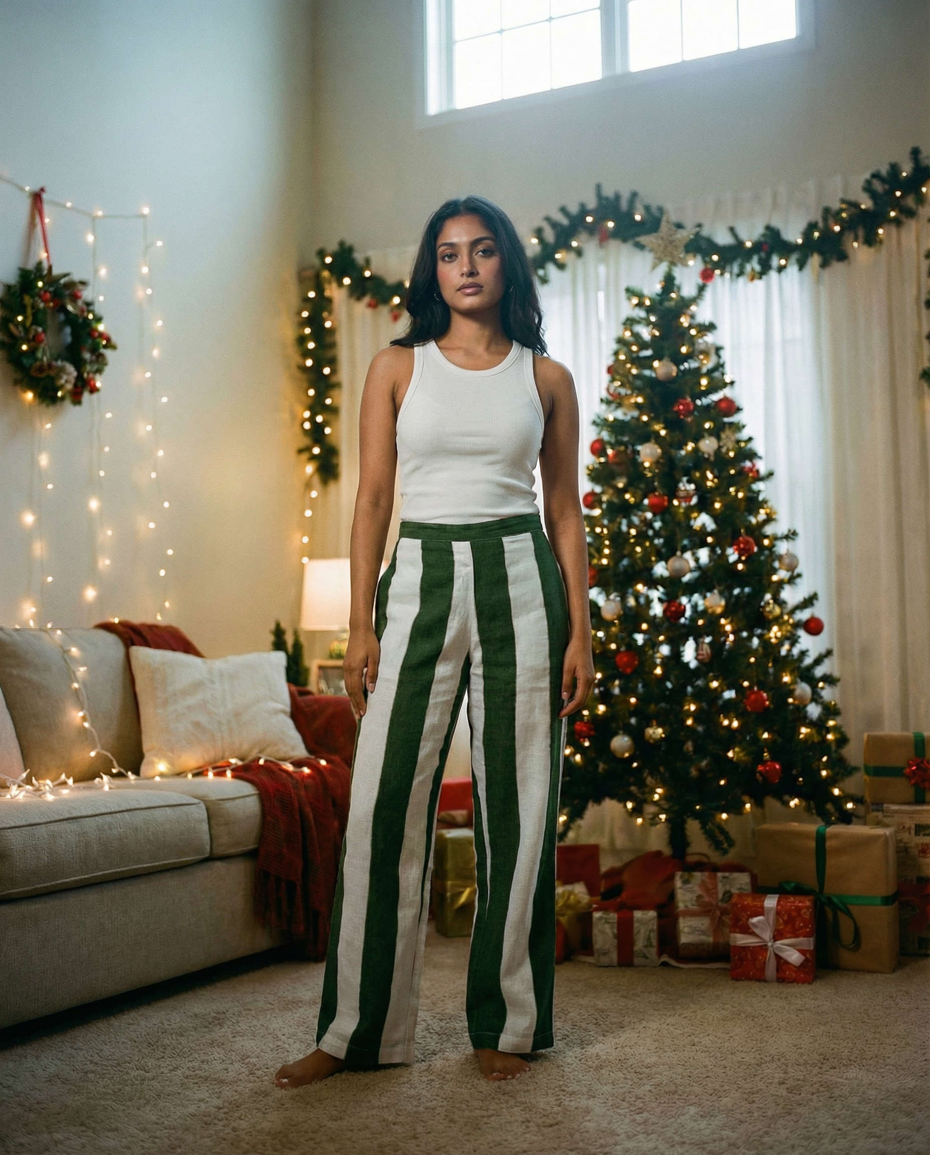 The Aura Pants in Fern are a fresh, grounded take on relaxed tailoring. Made from breathable linen, these pants feature a straight fit with a clean front belt and an elasticated back waistband for comfort without compromise. Side pockets add functional ease, while the fern palette brings a calm, natural energy to the look. Effortless and versatile, the Aura Pants are designed for slow days and polished lounging alike.