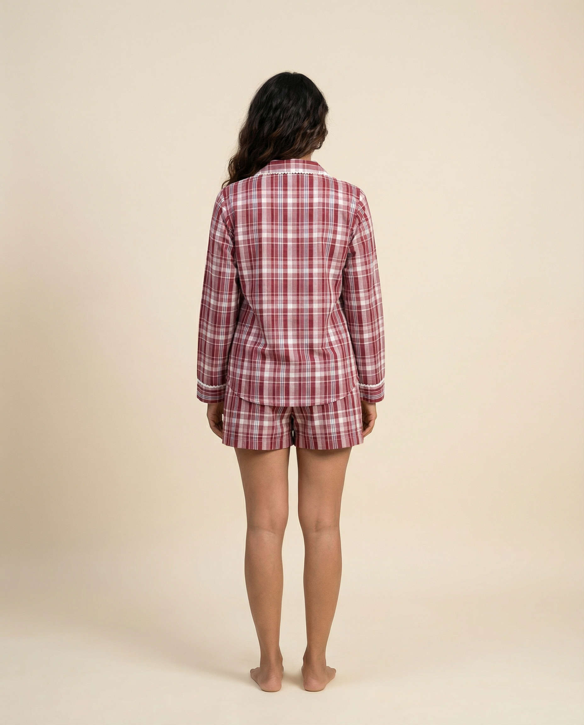 The Holly Starlit Set in Pink Tartan is a relaxed yet polished pairing designed for easy, everyday comfort. Featuring the classic Holly Shirt with the Starlit Shorts, this linen set balances soft tailoring with effortless wearability. The shirt’s notched collar and button-down front bring structure, while the shorts offer comfort through a clean front belt, elasticated back waistband, and functional side pockets. Finished in a warm pink tartan, this set is ideal for lounging, slow mornings, or casual outings.