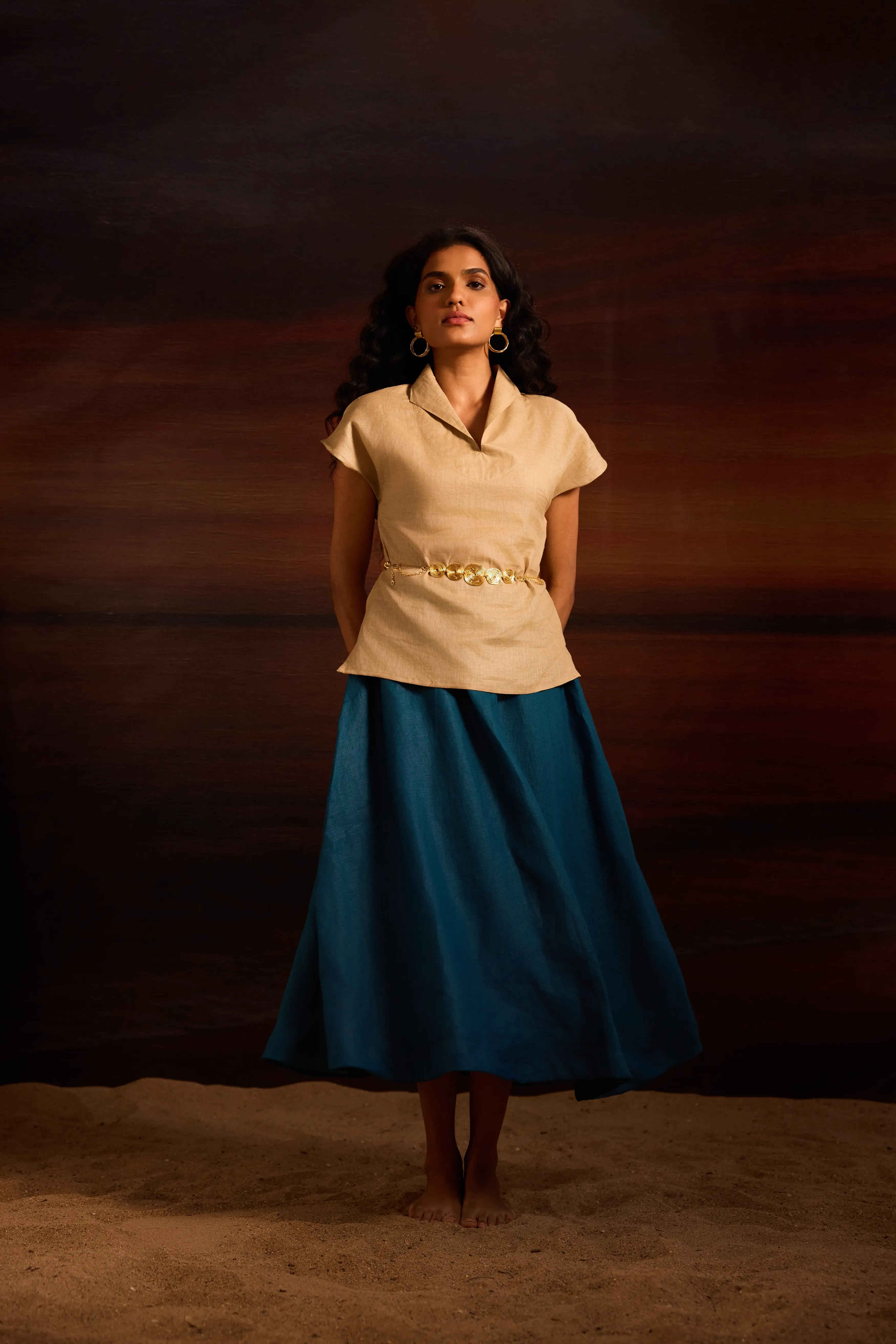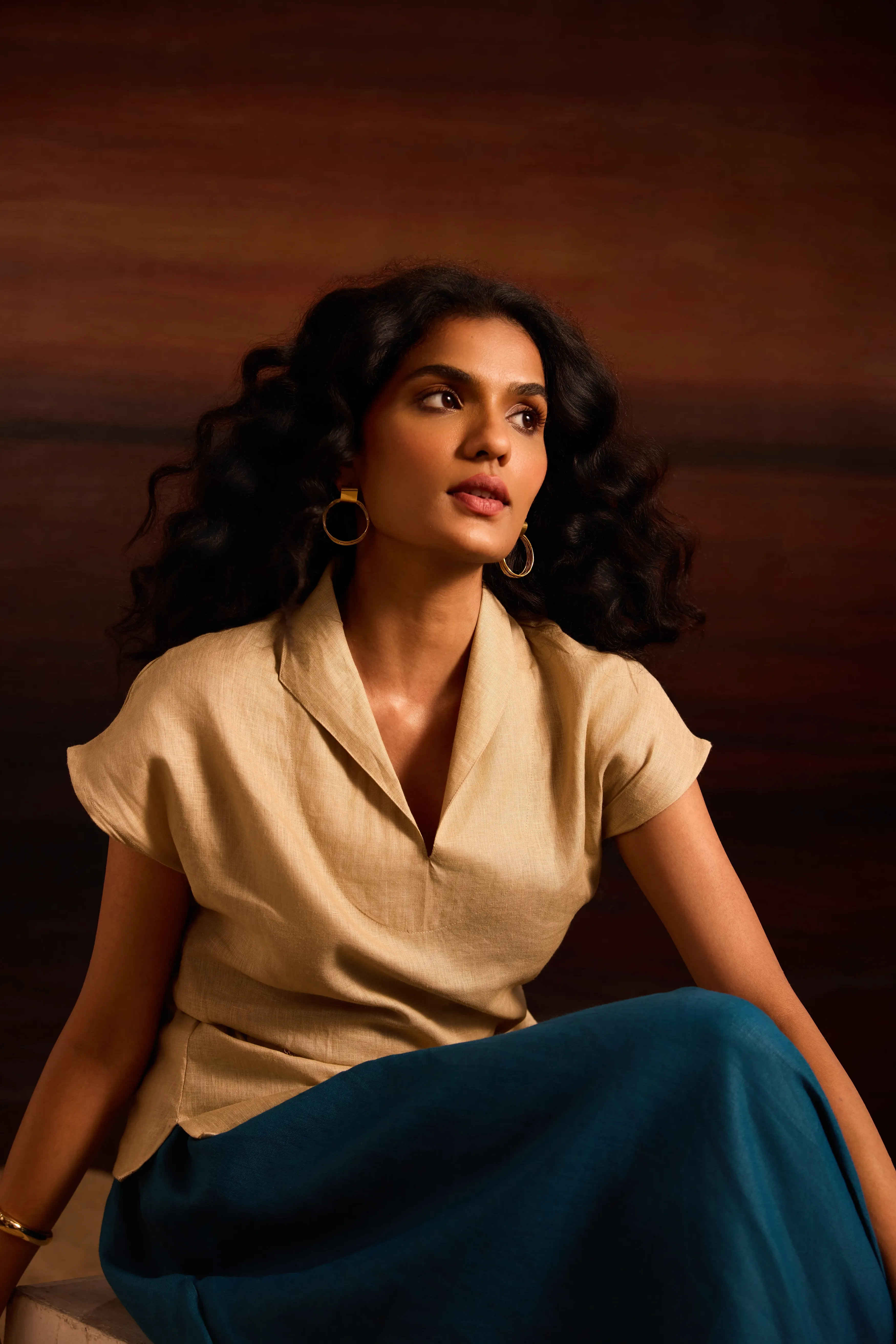 Chic and structured, the Maelis Top is a refined take on everyday ease. Featuring a gently draped V-slit neckline, relaxed cap sleeves, and a straight silhouette with side slits for movement, it's tailored from breathable linen that flatters the form while keeping things light. Whether styled with skirts or trousers, belted at the waist or worn loose, this versatile staple brings quiet confidence to your wardrobe.