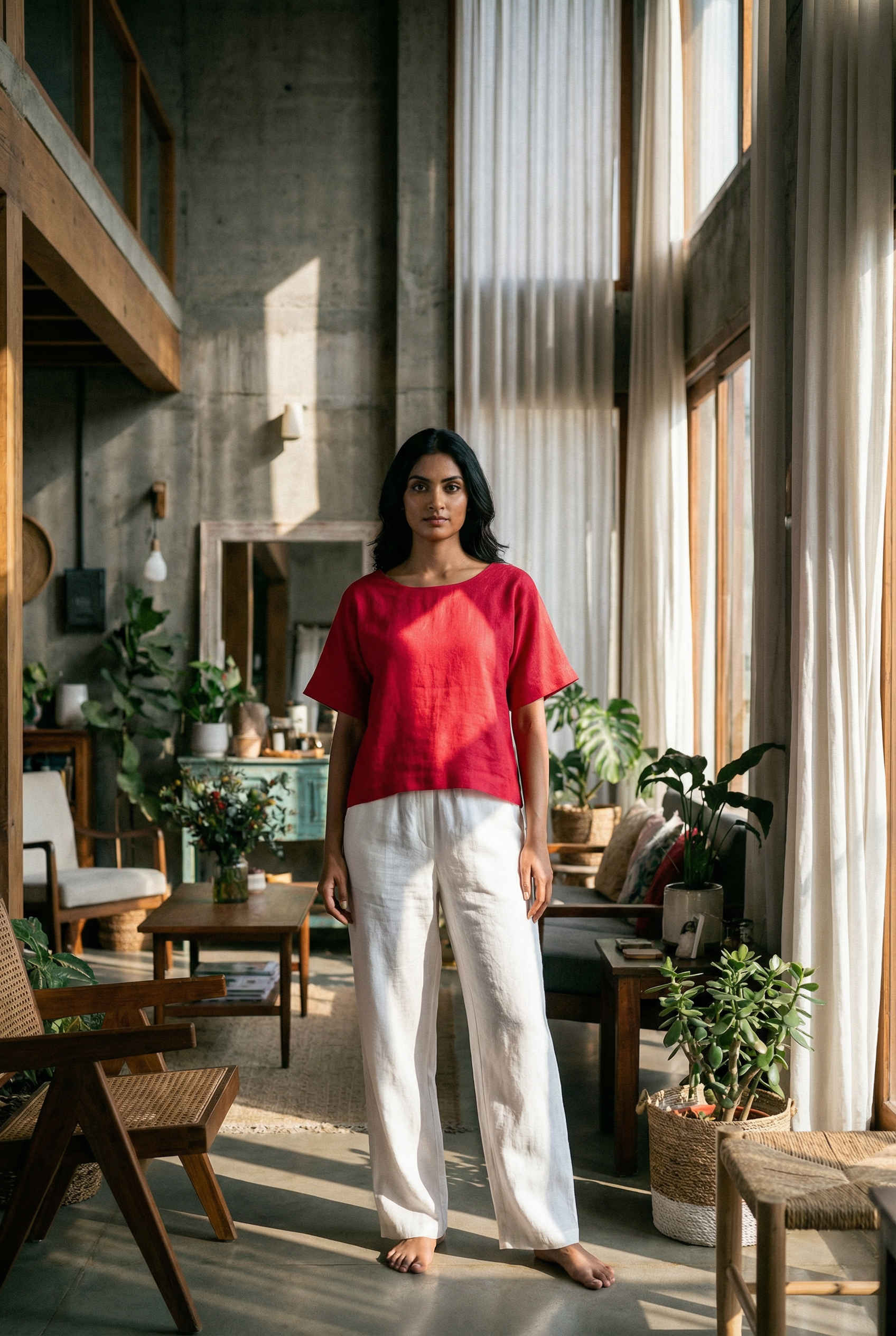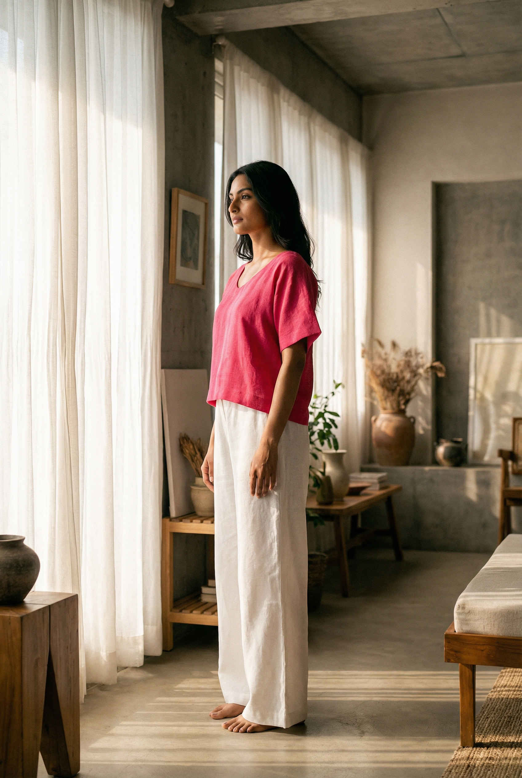 Currently living in loungewear? Our Magnolia top allows you to indulge in lounging all day long. Not your typical basic, it redefines the staple t-shirt with its shapely silhouette. It flaunts a scoop neckline, a charming hi-low hem, and short, boxy sleeves that add structure to the shoulders.