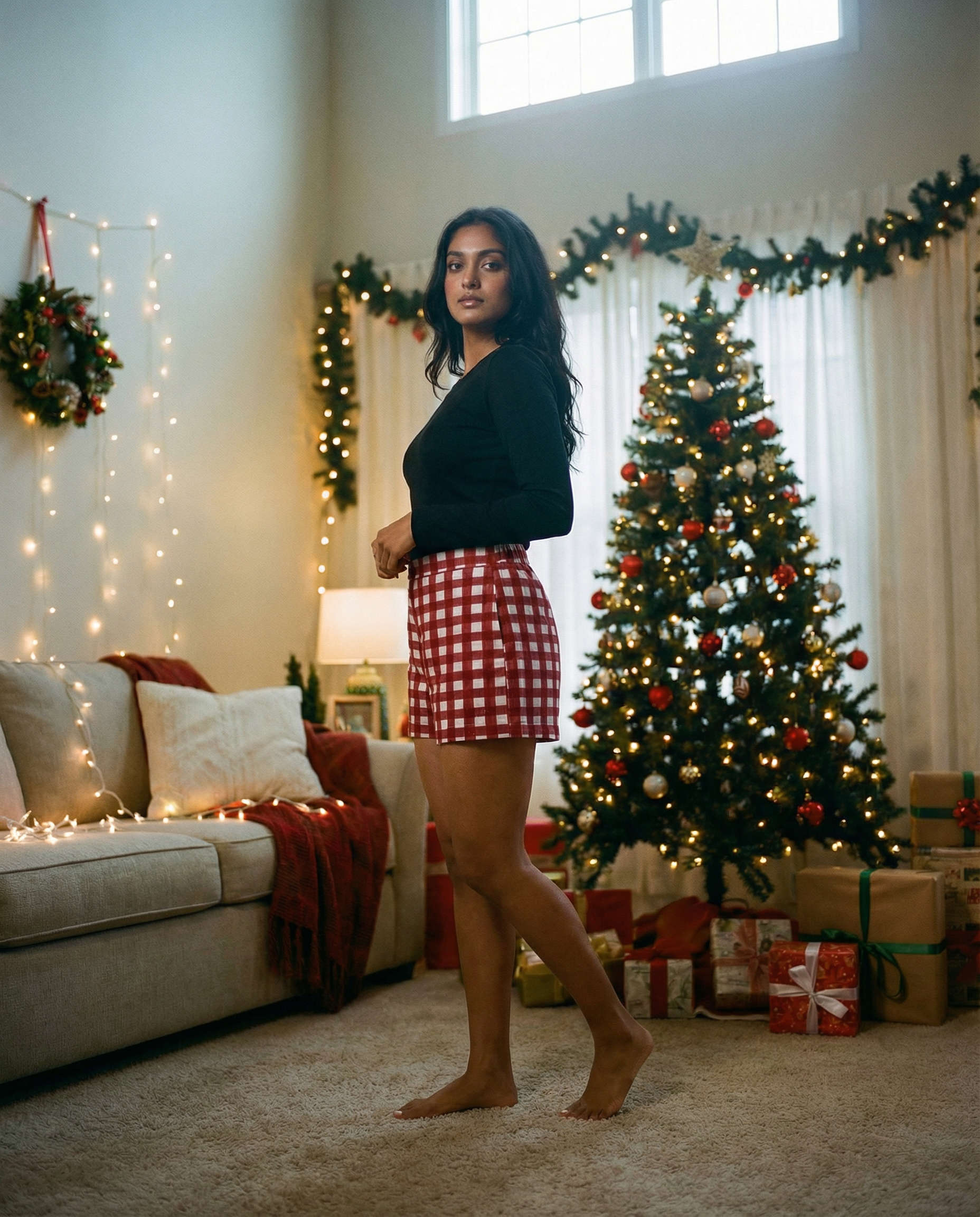 The Starlit Shorts in Candy Cane bring playful character to a comfort-first silhouette. Crafted from breathable linen, these shorts feature a structured front belt paired with an elasticated back waistband for ease and flexibility. Functional side pockets enhance everyday wearability, while the candy cane check adds a festive yet balanced graphic touch. Designed for relaxed days with personality, the Starlit Shorts are easy, cheerful, and versatile.